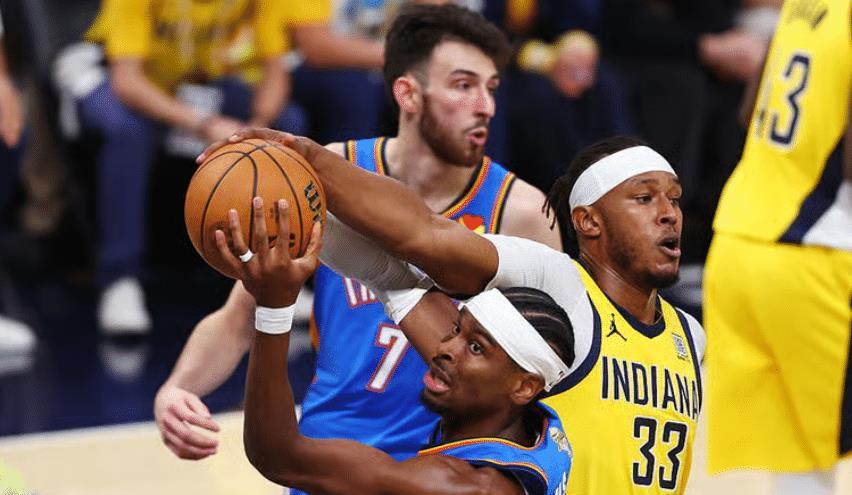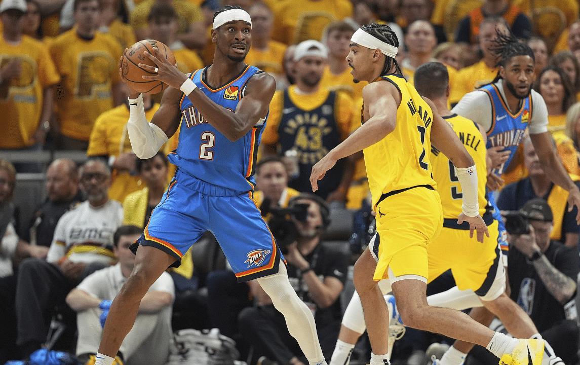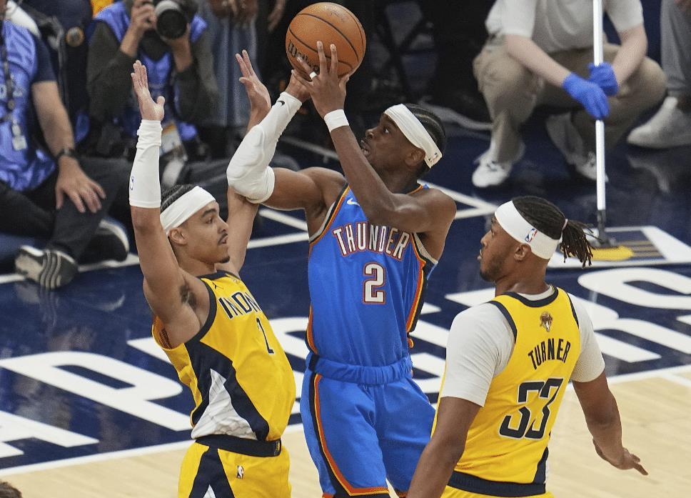 SGA在G3一战中相当拉胯,全场比赛20中9+三分3中1拿到24分6失误,他打出了最差的总决赛表现。这场G4对于雷霆来说是生死战,可SGA还是被内姆布哈德与内史密斯限制的很难受,首节SGA5中2+三分1中0拿4分。